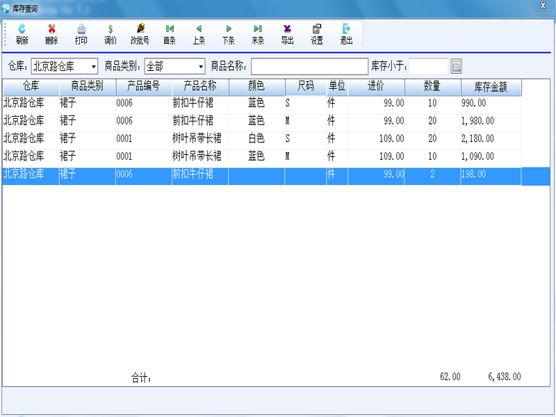 庫存查詢界面,可以根據(jù)授權(quán)查詢每一個(gè)分店的庫存,方便調(diào)貨