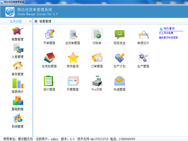 琦順達(dá)送貨單打印軟件不僅僅集成了送貨單管理、產(chǎn)品管理、客戶管理、數(shù)據(jù)分析、圖表分析等常見的送貨單打印管理功能,還集成了商品進(jìn)銷存管理、應(yīng)收賬款管理、應(yīng)付賬款管理、銀行收支管理、支票打印管理、快遞單打印等等功能,在管理好送貨單的同時,您還可以管理好您的產(chǎn)品進(jìn)銷存情況以及客戶欠款情況。